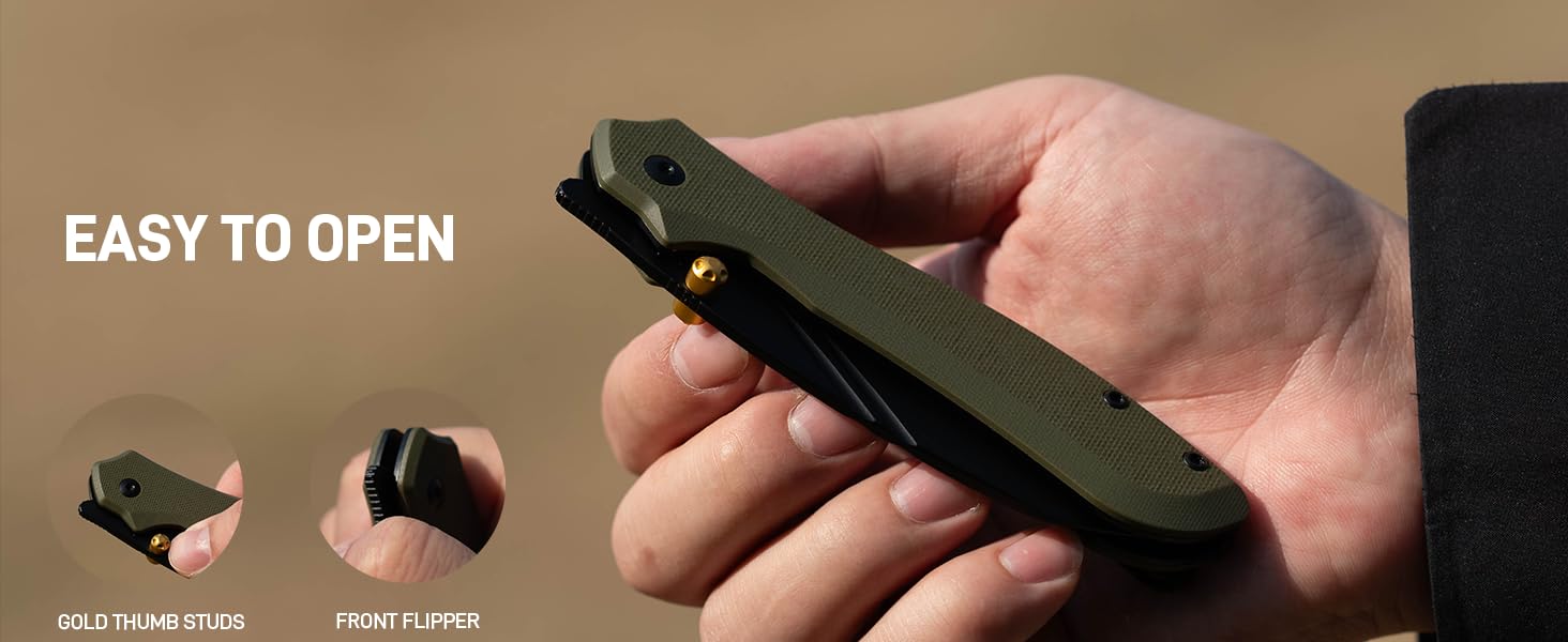 Attention to detail is key, with features like gold thumb studs that intentionally misalign with the jimping and blade stripes that don't necessarily complement the overall design. These quirks contribute to the knife's "fugliness," while ensuring it remains a comfortable everyday carry (EDC) tool with an incredibly functional blade shape.
