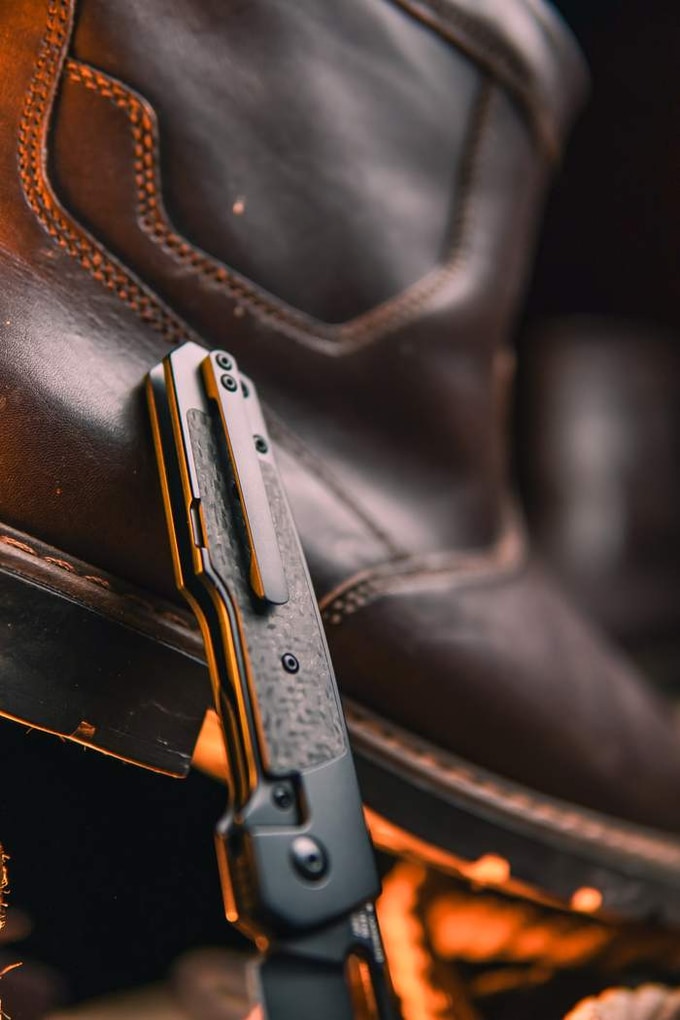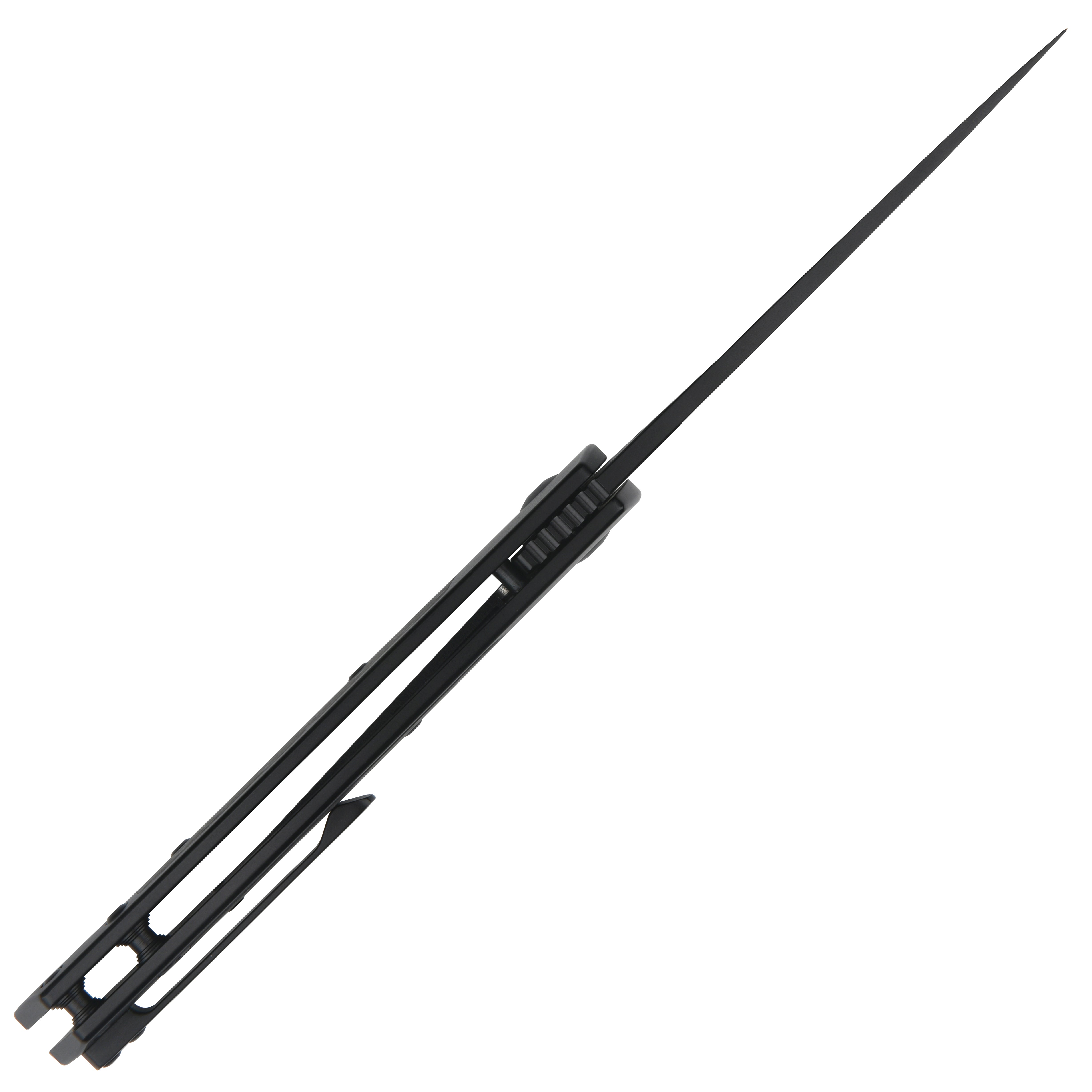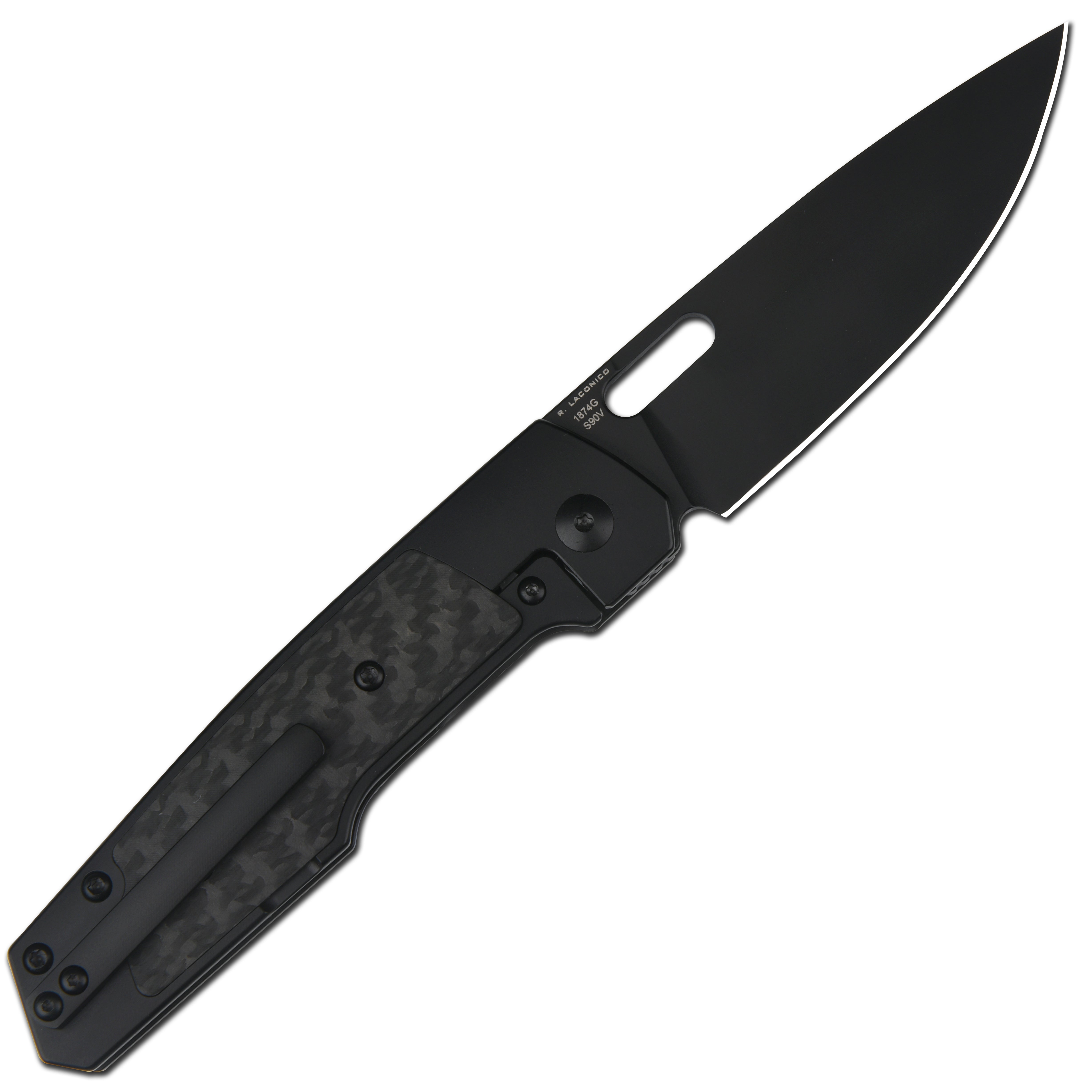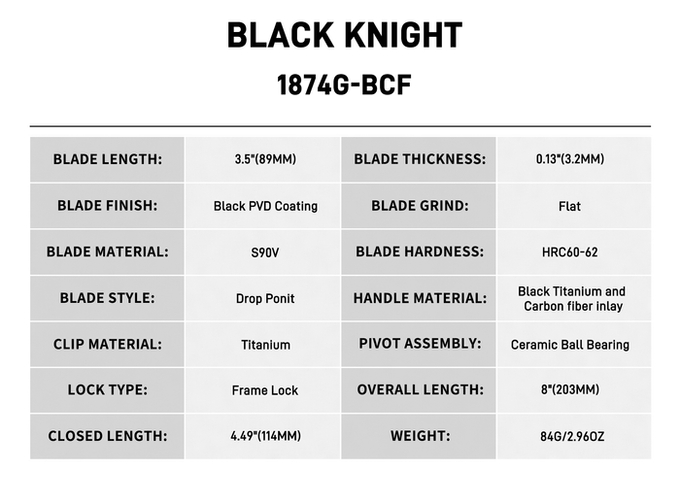 Trying to go incognito? We��ve got you covered with the Black Knight series, a fully blacked-out version of the Gambit with sleek carbon fiber inlays. The slight shine of the Carbon Fiber perfectly offsets the black PVD coating used on the body, blade, and hardware of the knife, not only making this knife a classy carry with a suit or dress pants, but also making it highly durable and corrosion resistant. Our PVD coating process creates a clean matte finish that is highly durable and chip resistant and wears beautifully over the life of the knife.