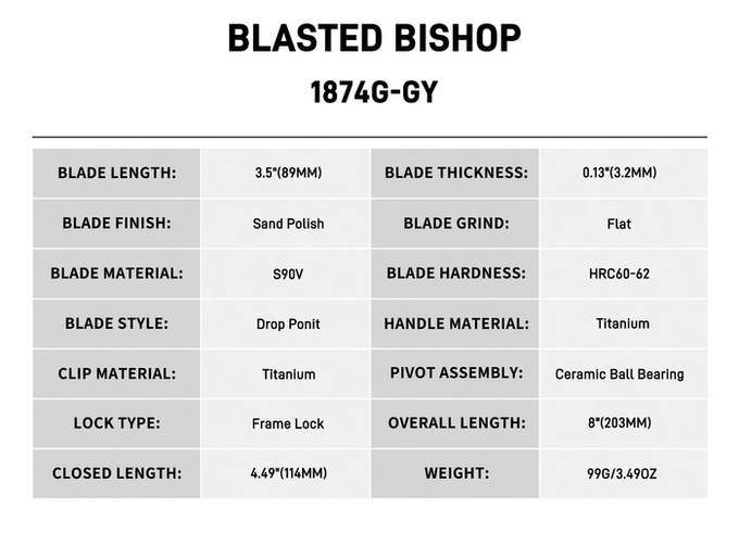 路�Blade Material: All versions of the Gambit feature premium S90V steel (HRC 60-62) for exceptional edge retention and durability.