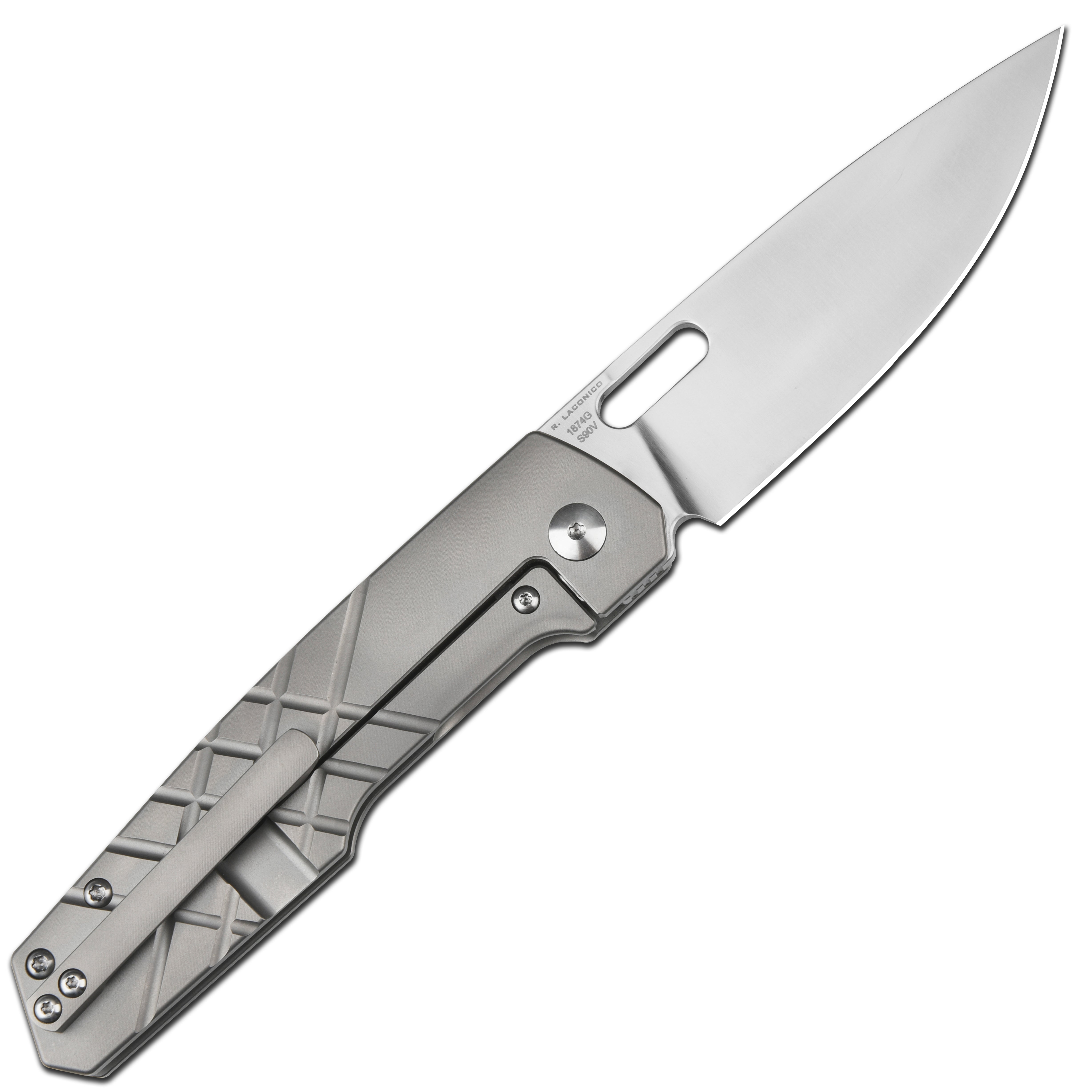 Sometimes simplicity is best. The Blasted Bishop series does away with the option for inlays in favor of a full blasted titanium frame with just a little bit of milling detail. The clean gray titanium finish is perfect for a no-frills user who just wants to see the beauty of the material itself come through. No extra inlays, just a solid framelock on a beautifully designed tool.