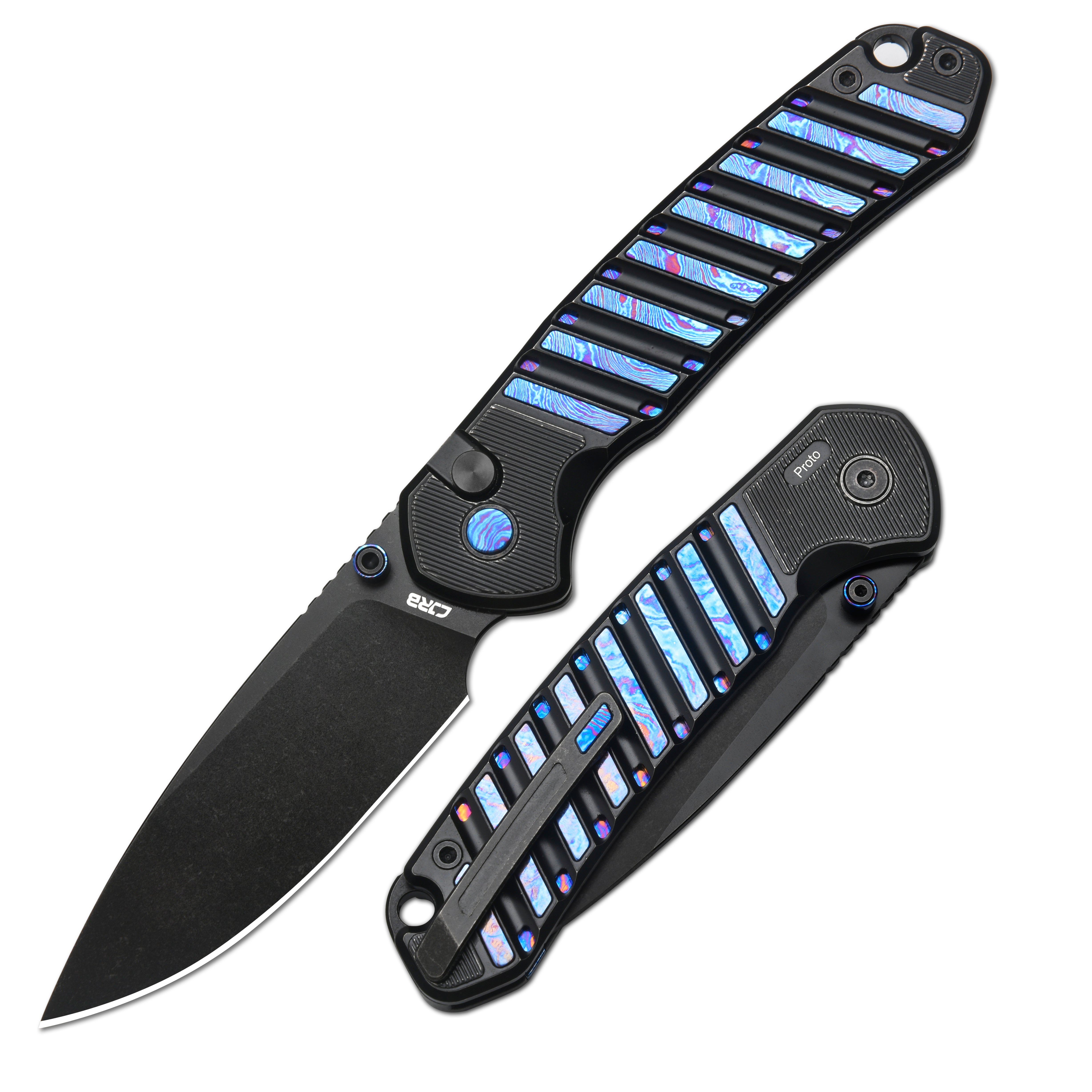 CJRB Galactic Pyrite J1925G S90V Blade Titanium and Titanium Damascus Inlay Handle Folding Knives(Limited edition) - Black (J1925G-BTDB)