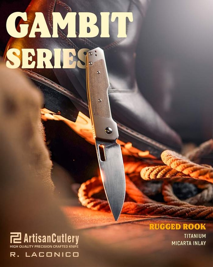 The Gambit is Artisan Cutlery��s winning play, a sleek, elegant tool designed by the legendary Ray Laconico. We have been holding onto this design, perfecting it, and waiting for perfect opportunity to put our pieces into play. Our goal is not to simply release something hot and new in an ever-expanding market, the gambit is designed for the long game. For the first time in the History of Artisan Cutlery we are offering a model with interchangeable �inlays! The gambit will allow any user to quickly swap inlay pieces to match their personal style. Coupled with the versatility of this Ray Laconico design the Gambit may simply turn into the only knife that you��ll ever need, with an incredibly versatile form factor that emphasizes ease of use while still providing a comfortable grip and easy carry, we can easily see the Gambit making a play to be your new EDC.