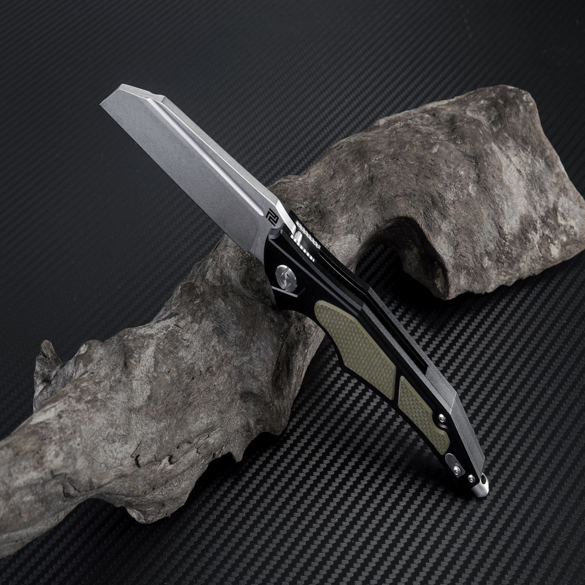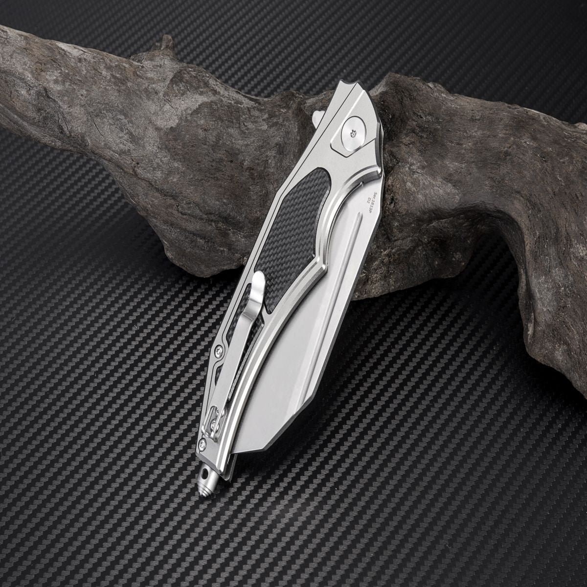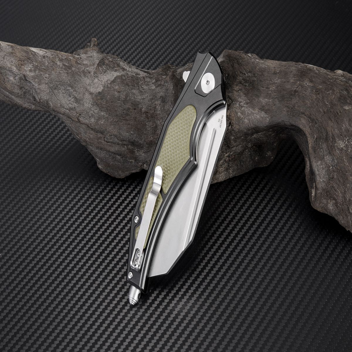 The ArtisanCutlery Apache Nomad is one serious folder with immense cutting power. It sports a wide 3.70" D2 tool steel blade that is very sharp out of the box and the flat ground Wharncliffe blade is a versatile cutter. Due to the design of the thumb ramp, if you need to choke up close to the blade for precise work - you can. It's a great design made with a reversible liner lock and deep carry pocket clip. The carbon fiber Onlays give the handles that touch of style that sets this knife apart. It also comes with a window breaker on the bottom of the handles, making it the perfect EDC knife. If you need a solid tactical folder, look no further than the Apache by ArtisanCutlery.