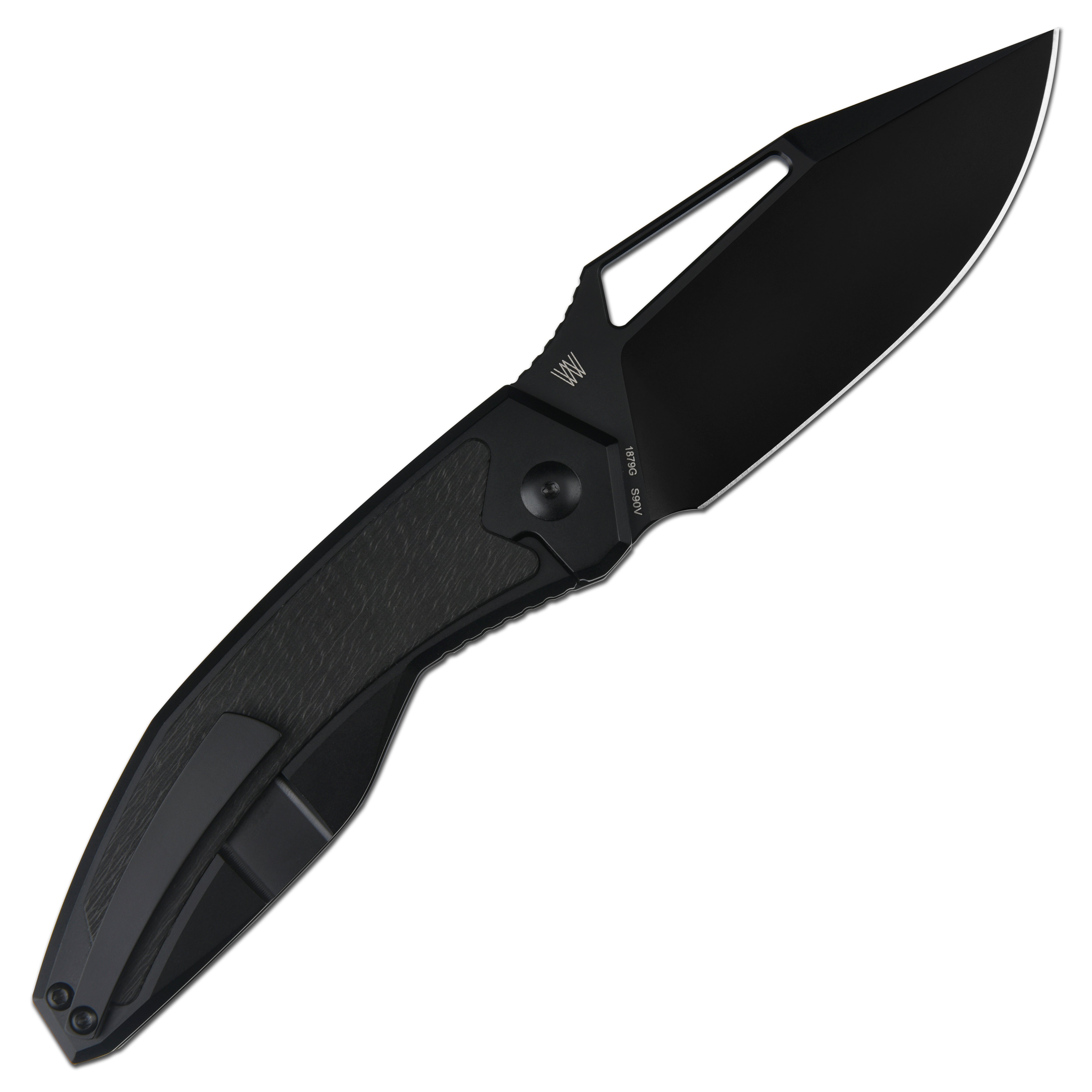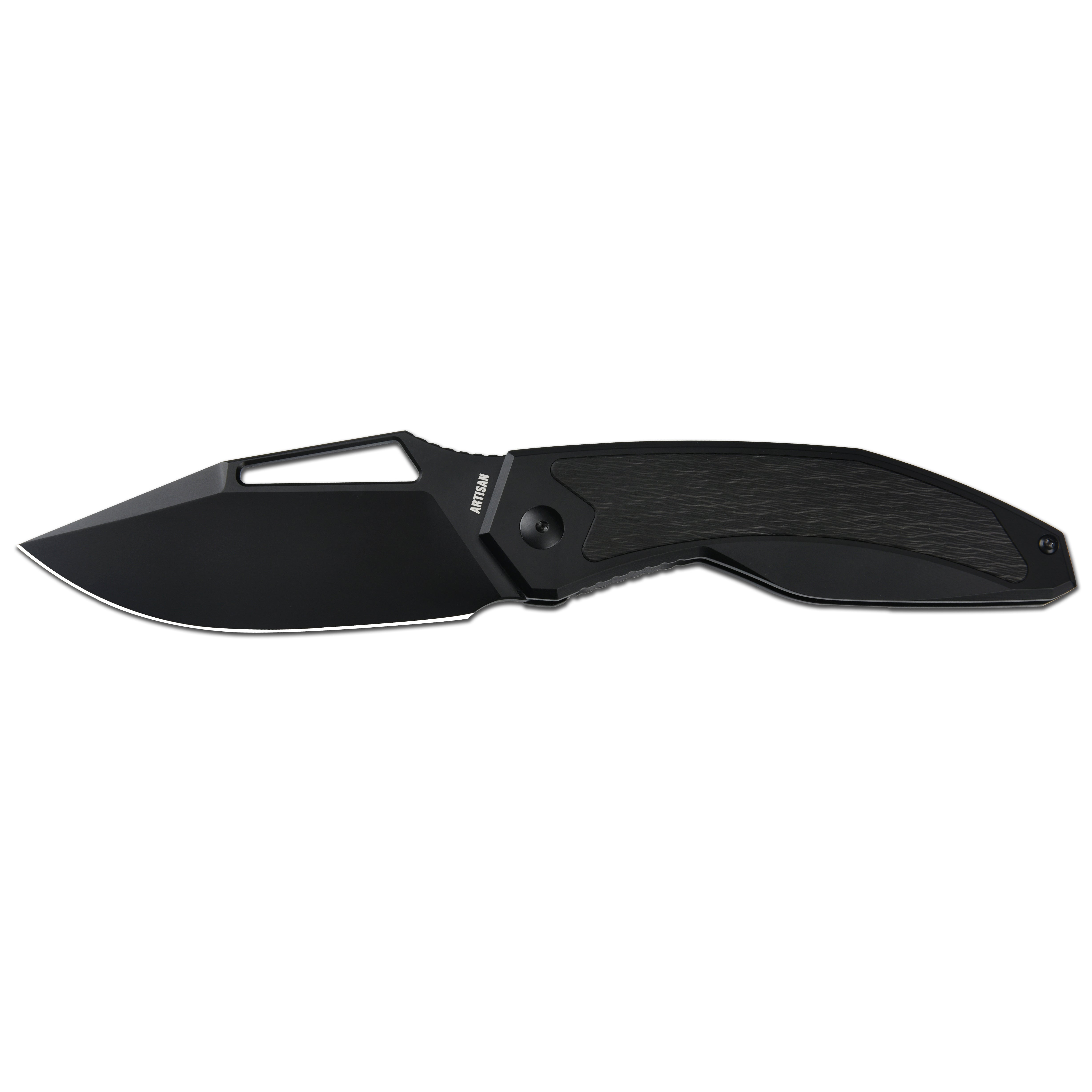 • Artisan Cutlery Fragarach ATZ-1879G S90V Blade Titanium Handle Folding Knives - Blak PVD Blade/Sidecut Fat Carbon Inlay (1879G-BBK)