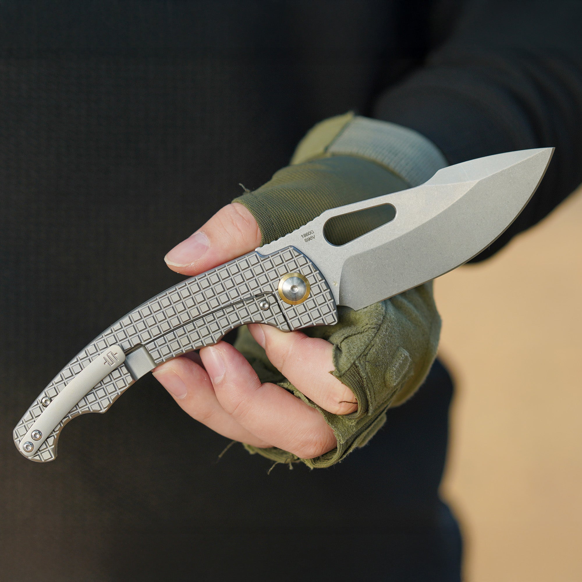 Coming in as our first design with custom knife maker Mike Snody, the Xcellerator makes a big impression. With a powerful 3.75” blade, this knife cuts an imposing figure while still feeling light and fluid in the hand. This special edition features a full titanium framelock with frag texture and a premium S90v blade. The unique handle shape of the Xcellerator allows for a variety of comfortable gripping positions, and the titanium frame lock provides a strong and secure lockup while staying surprisingly slim and light for such a large knife. The Xcellerator is sure to turn some heads with its combination of good looks and raw power!