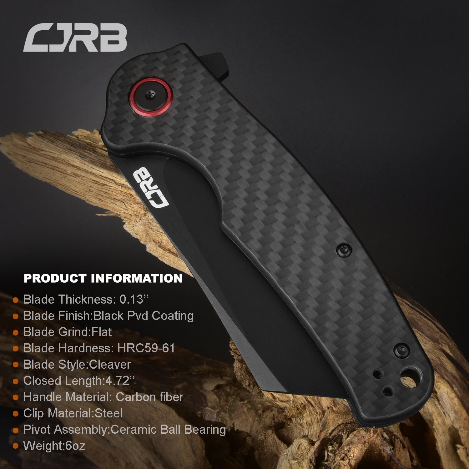 • CJRB Crag J1904 AR-RPM9 Steel Black Pvd Blade Carbon Fiber Handle Folding Knives