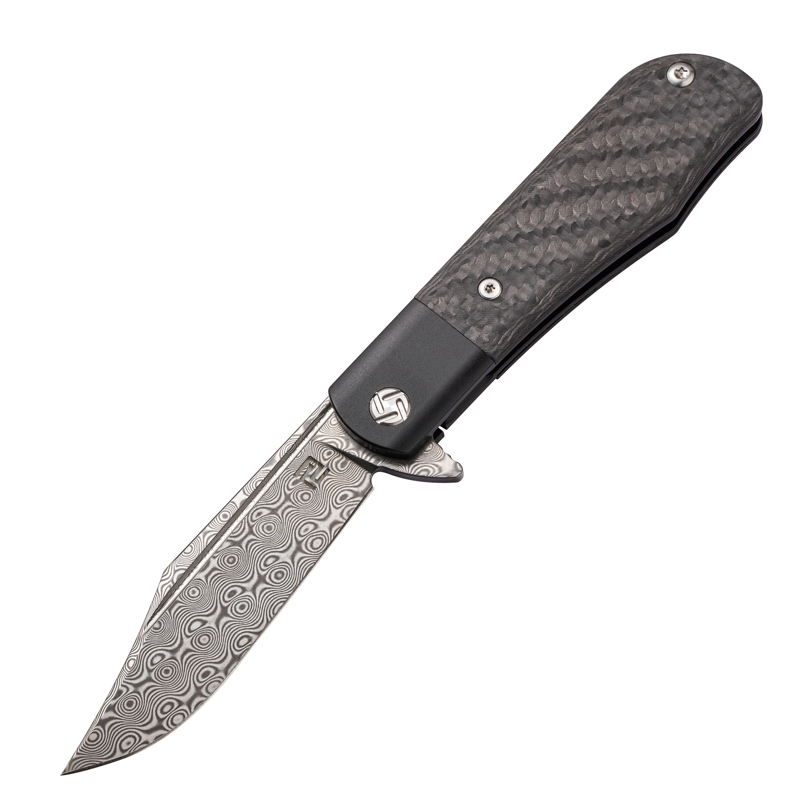 Artisan Cutlery Hyperion ATZ-1834GSD Damascus Blade Titanium and Carbon Fiber Handle Folding Knives