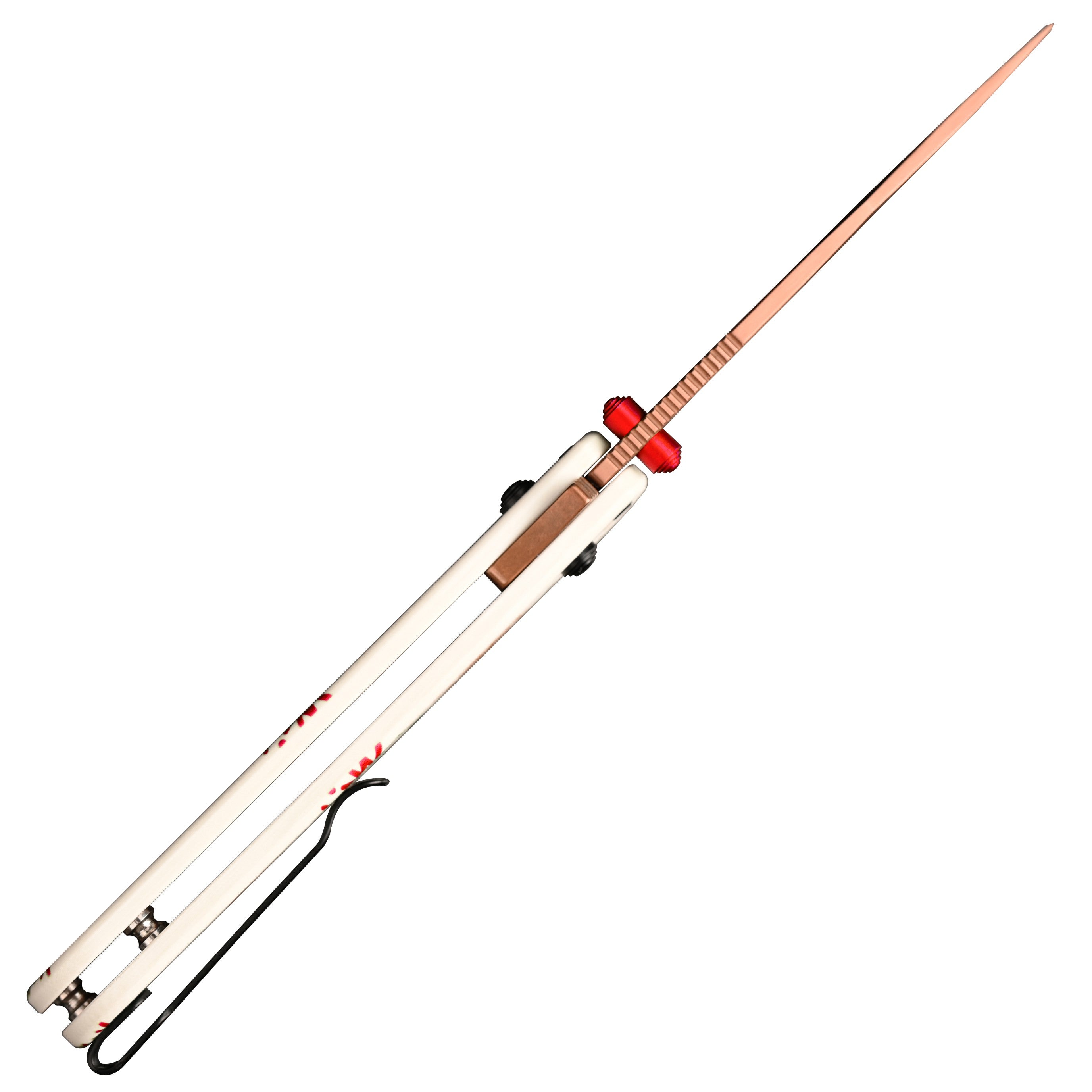 A clean white handle accented with soft red and gold snowflakes, paired with a warm rose-gold blade finish. Calm, elegant, and winter-perfect, this design brings a refined seasonal feel to your pocket.