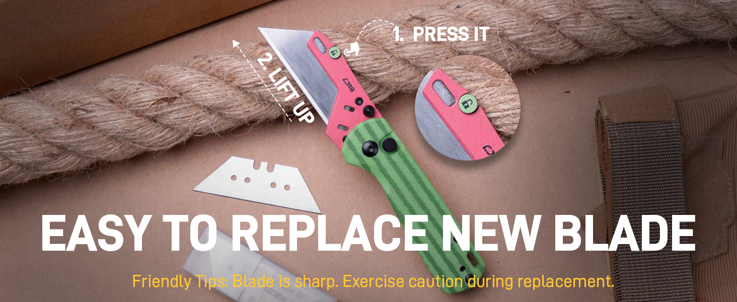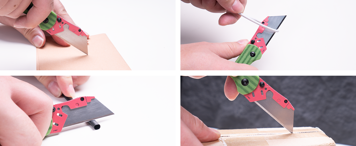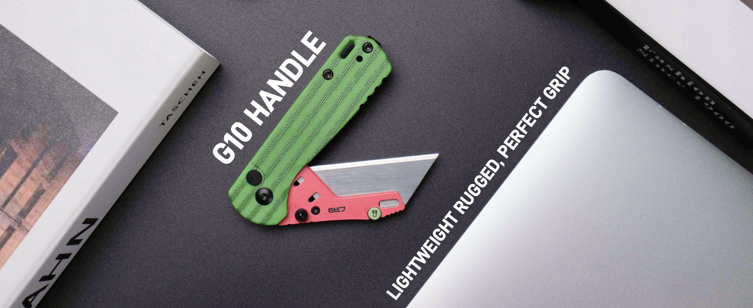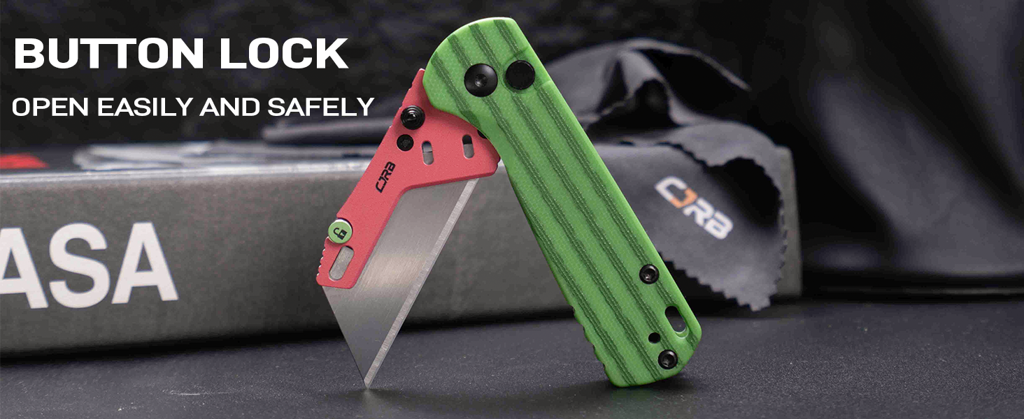 • CJRB Boxer J1967 G10 Handle Folding Utility Knife, with 10 Extra Blades (Green Watermelon)