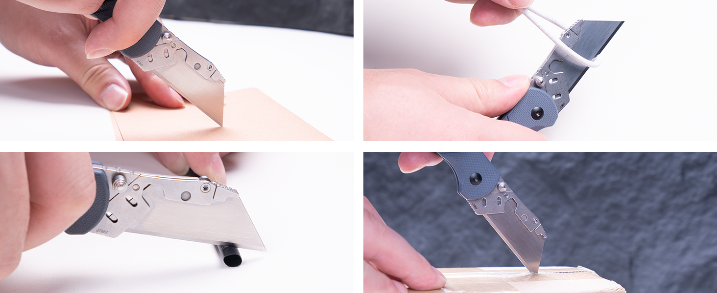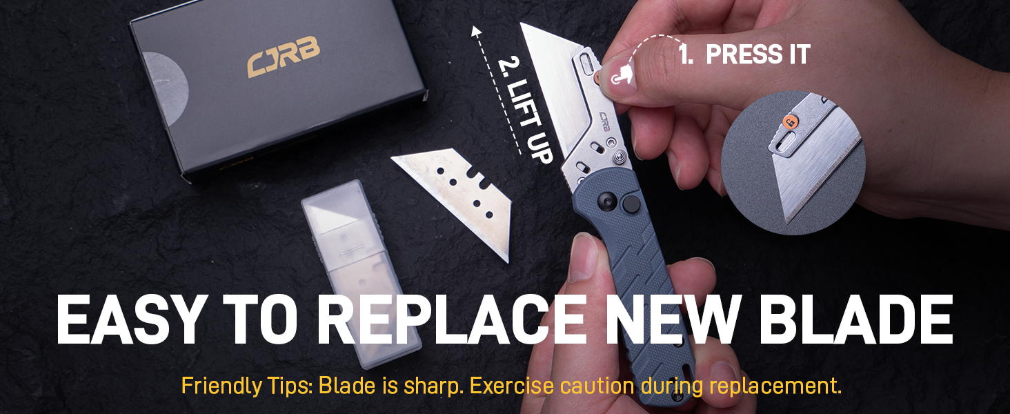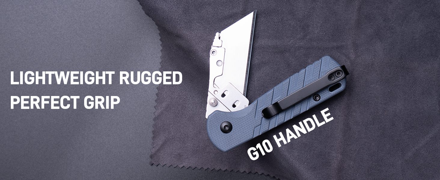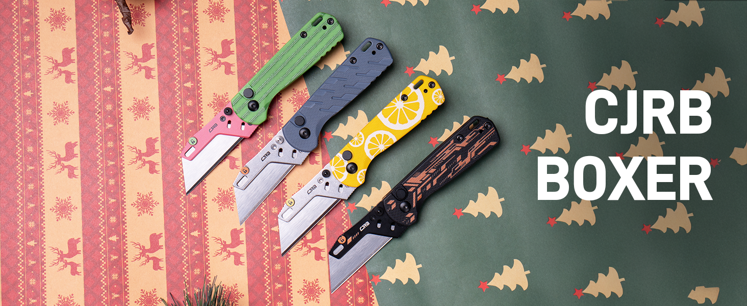 • CJRB Boxer J1967 G10 Handle Folding Utility Knife, with 10 Extra Blades (Blue Ripple)