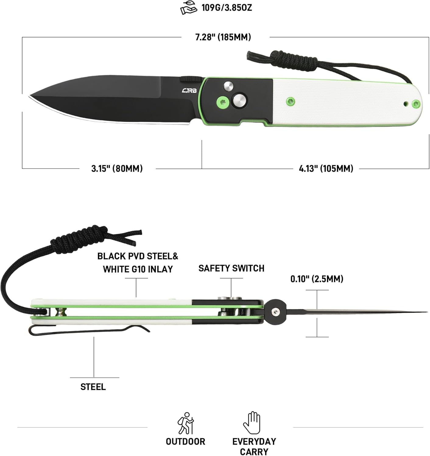 Handle Material Black PVD Steel + Green G10 Inlay Stone Washed Steel+White G10 Inlay Stone Washed Steel+White G10 Inlay G10 G10 Black PVD Steel + Black G10 Inlay Stone Washed Steel + Black G10 Inlay Black PVD Steel + White G10 Inlay