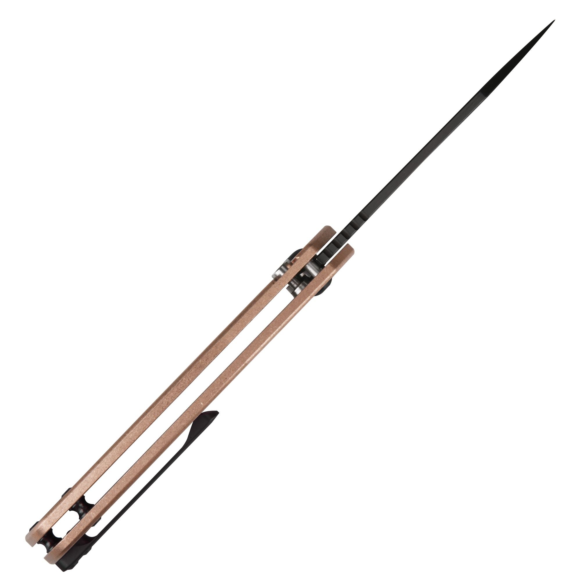 - Handle the knife with ease in any situation with the lightweight, copper handle; the titanium clip allows you to easily attach it to your belt or pocket