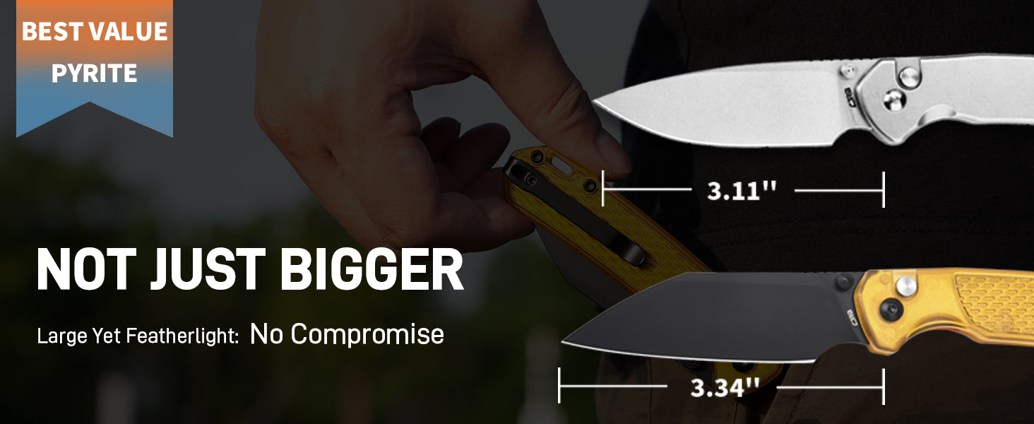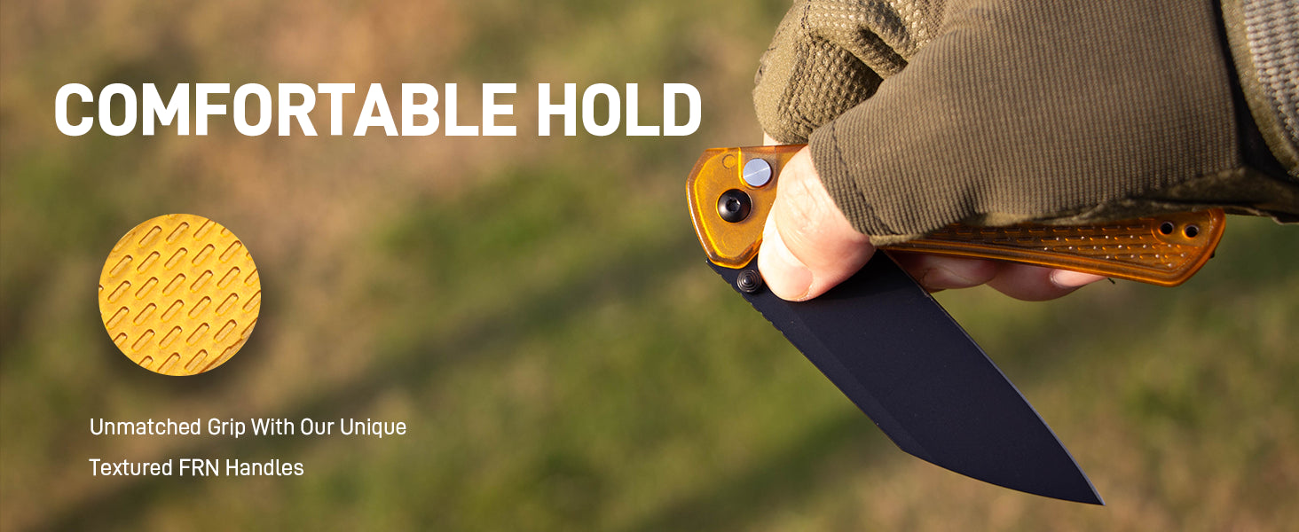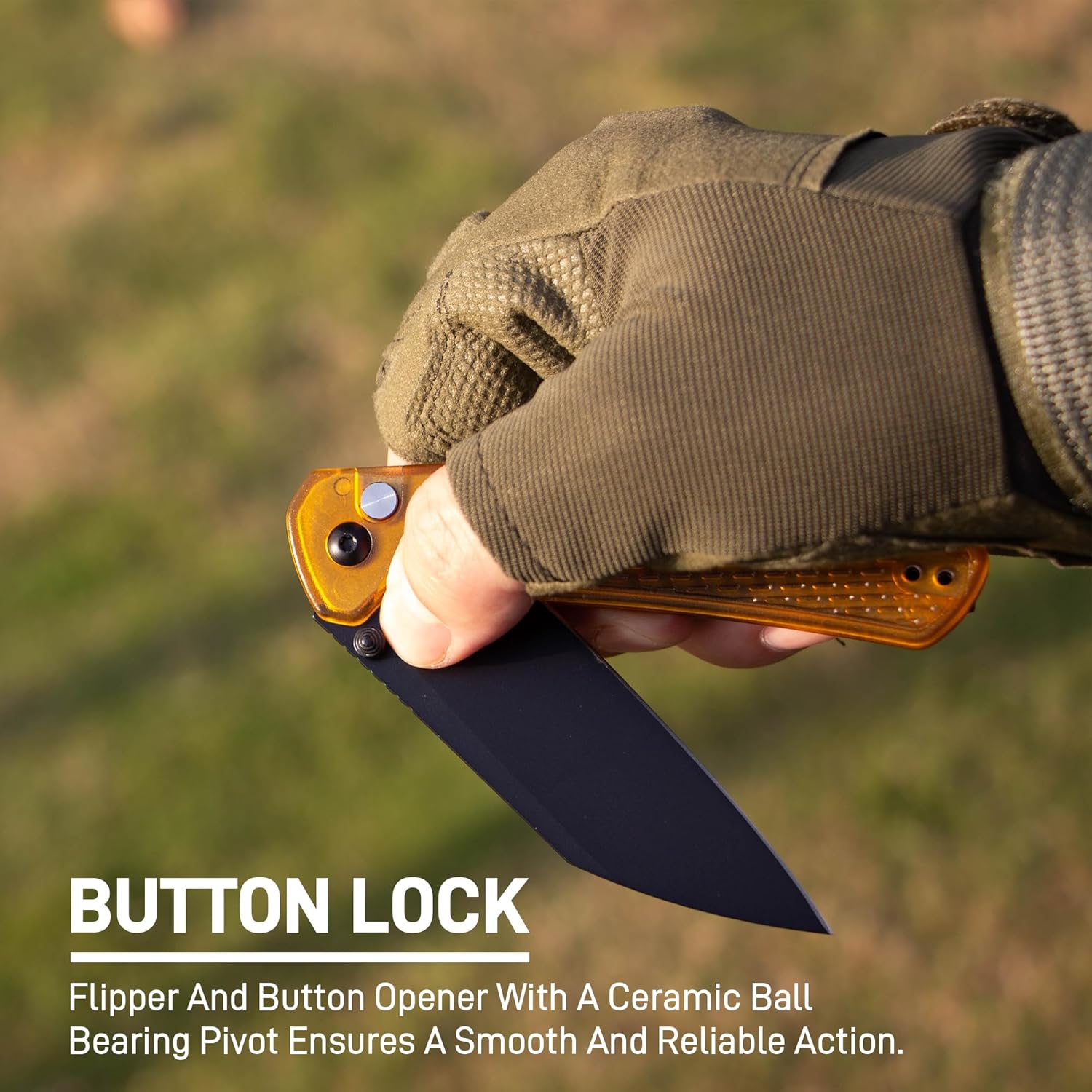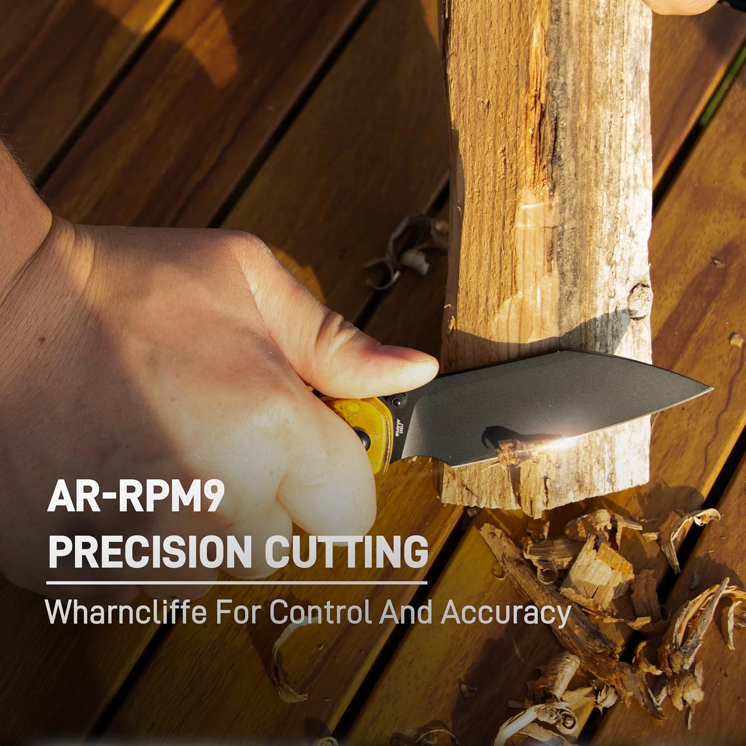 • CJRB Pyrite-Light J1945 AR-RPM9 Steel Blade Amber FRN Handle Folding Knives