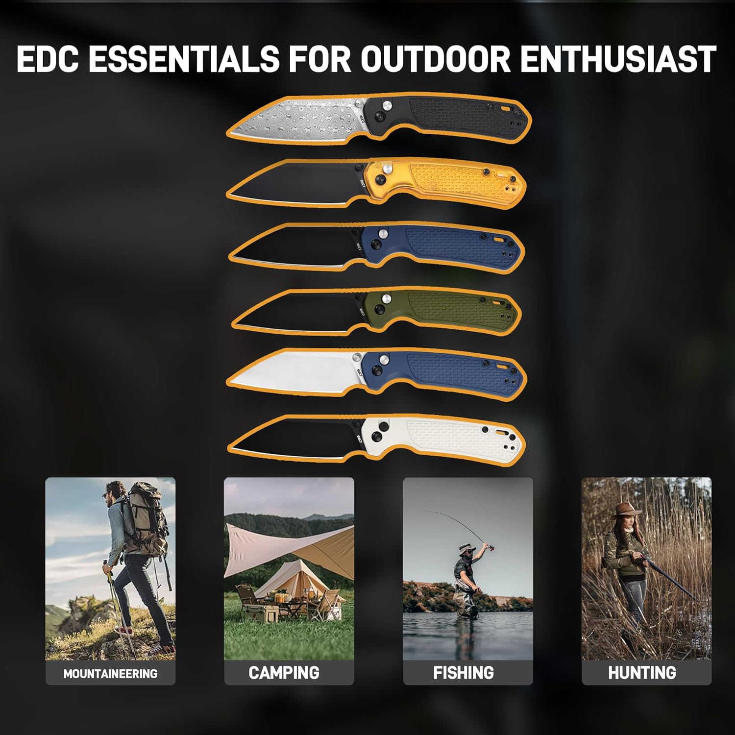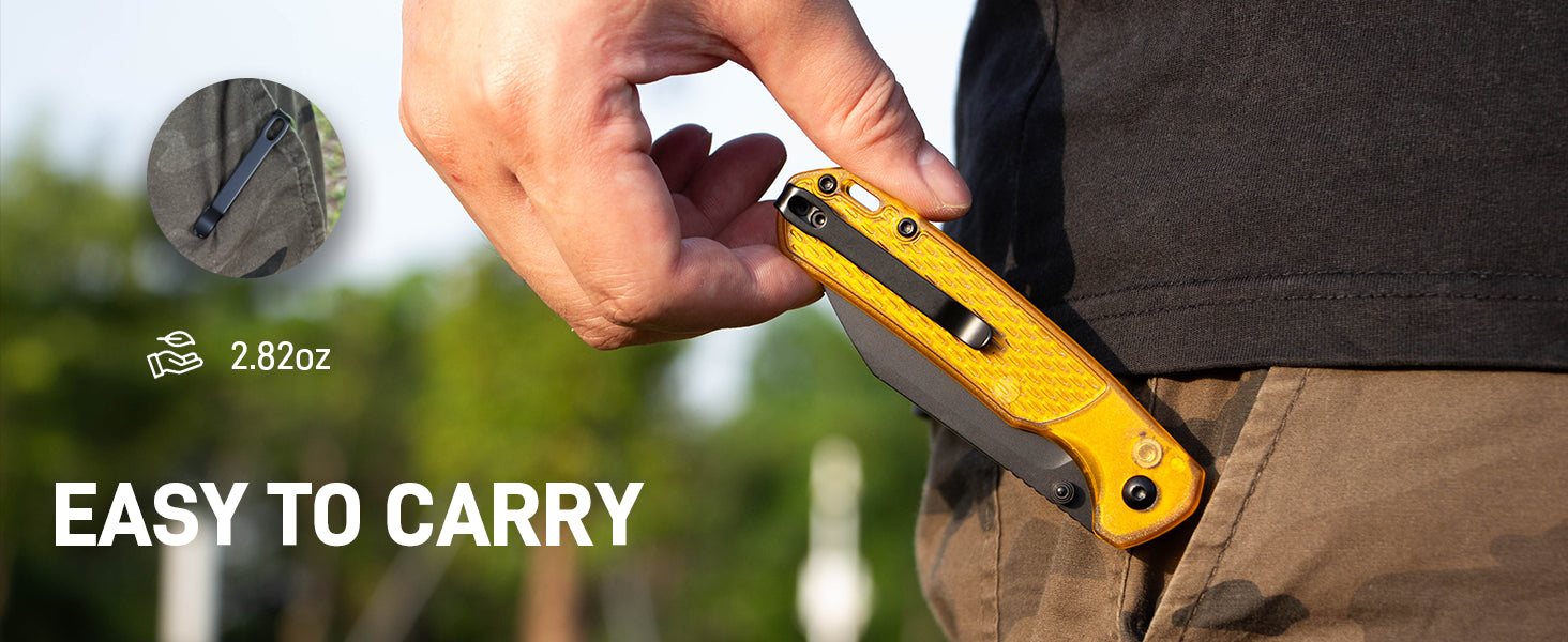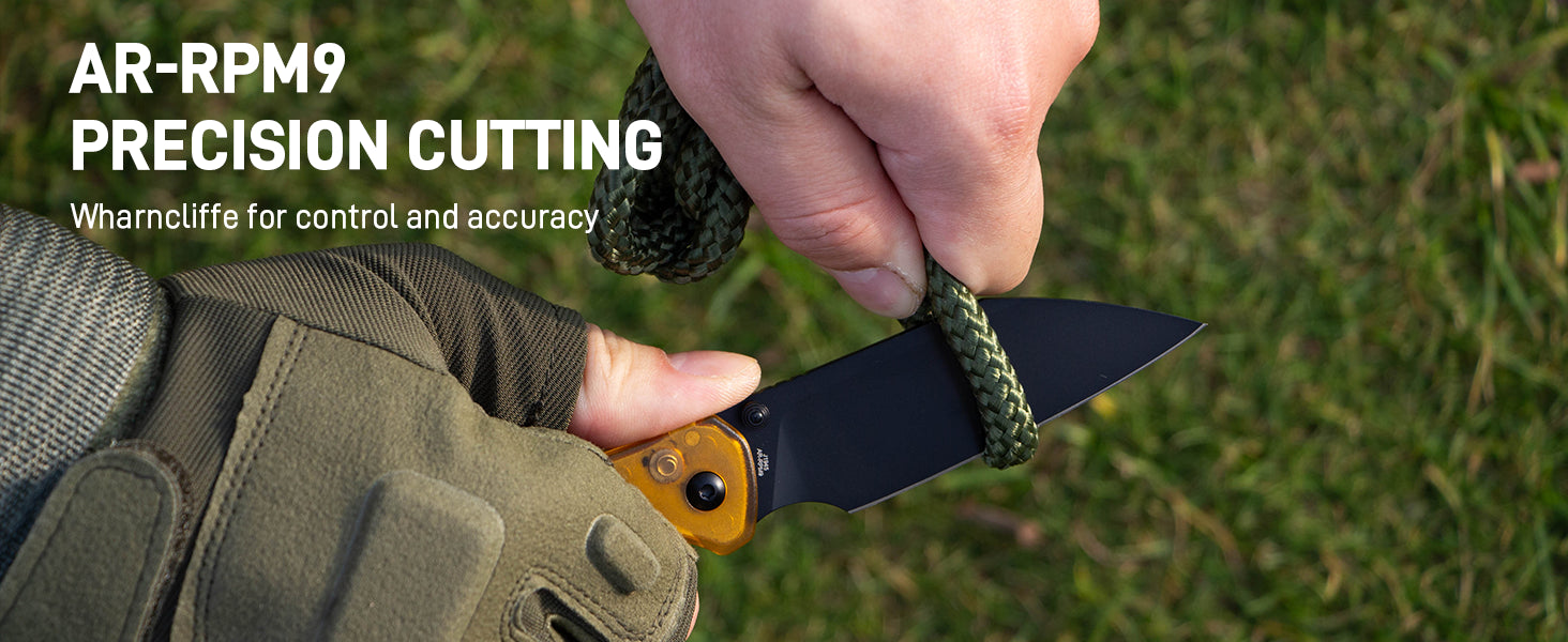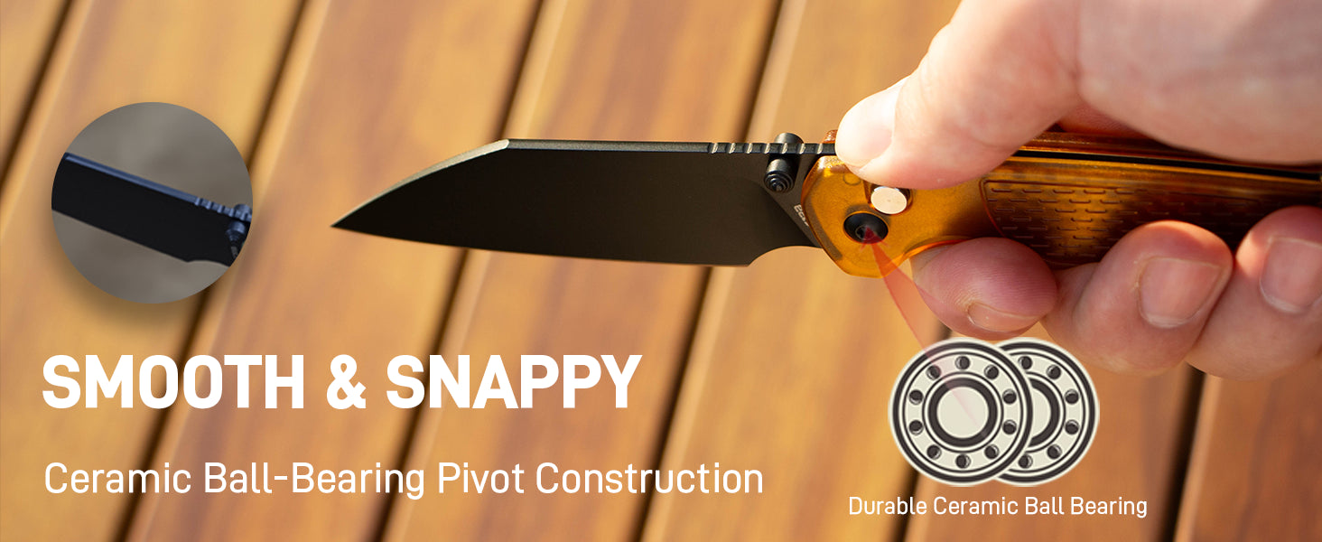 • CJRB Pyrite-Light J1945 AR-RPM9 Steel Blade Amber FRN Handle Folding Knives