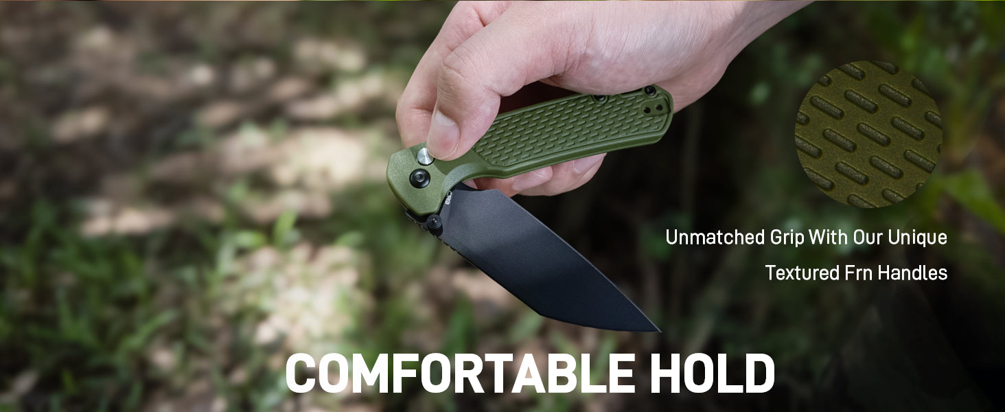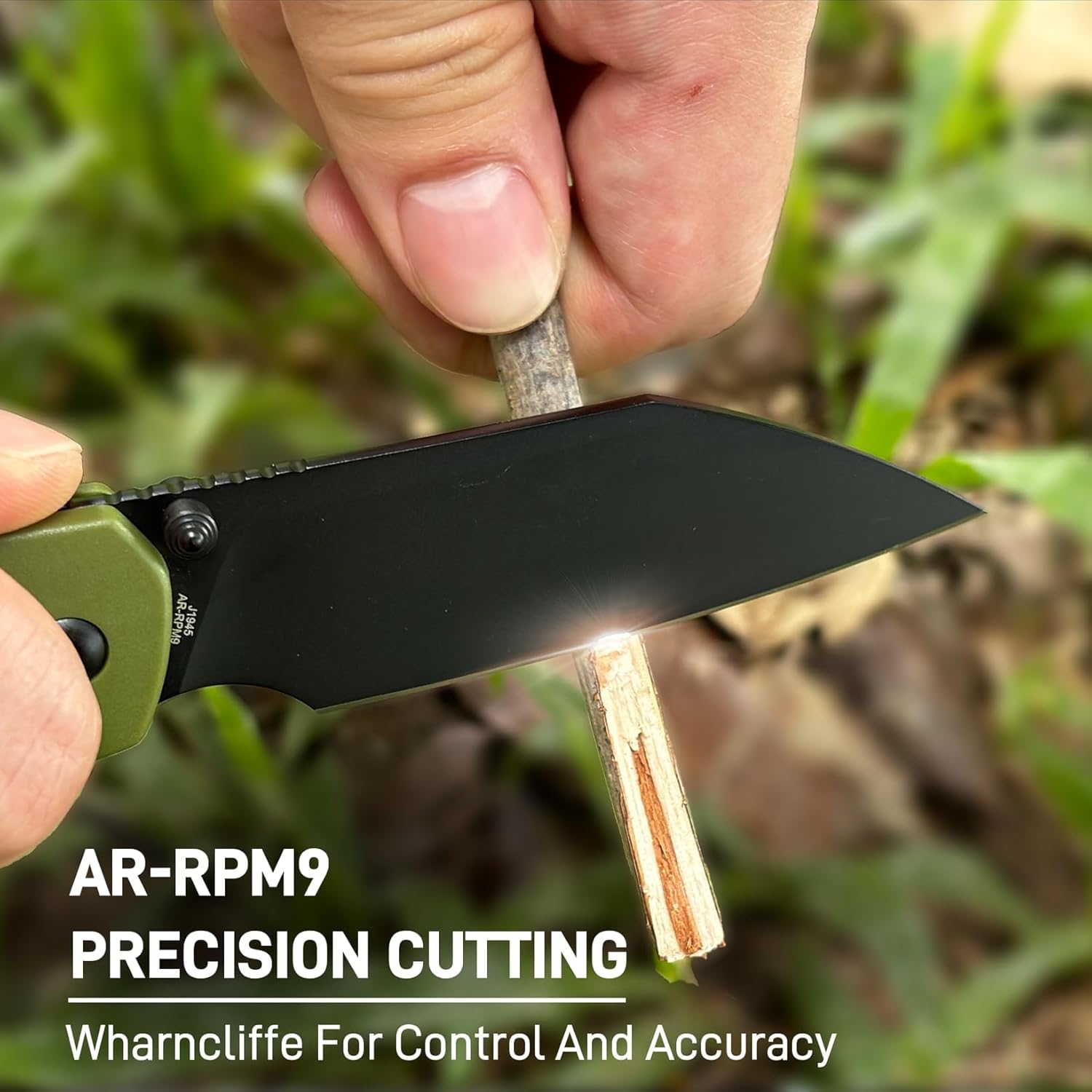 • CJRB Pyrite-Light J1945 AR-RPM9 Steel Blade FRN Handle Folding Knives - Black PVD / Green (J1945-BGN)