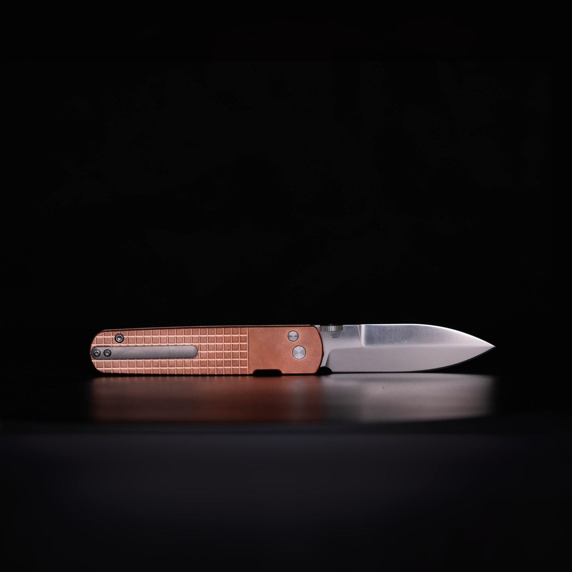 Copper is an incredible material that develops a unique patina over its lifetime and will become a unique piece of art over its lifetime of use. We wanted the first series of the Locust to be stylish and unique with a material that is seen less often in the EDC world. The Carved Copper Locust is built with two solid copper scales that have been carved with a frag grenade pattern. The blade is with a copper colored thumb disc. This version of the Locust is hefty and rugged, a perfect tool for someone who doesn’t mind getting their hands dirty and wants their knife to age beautifully with use.