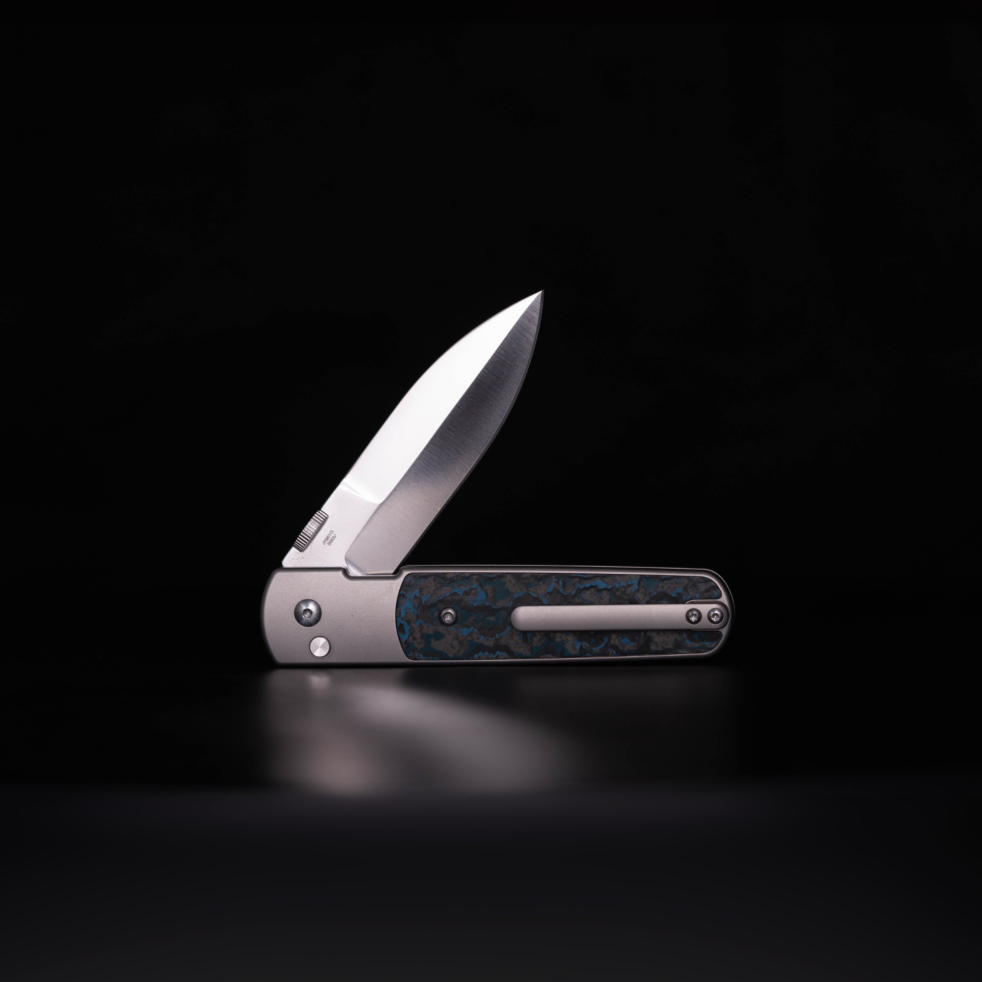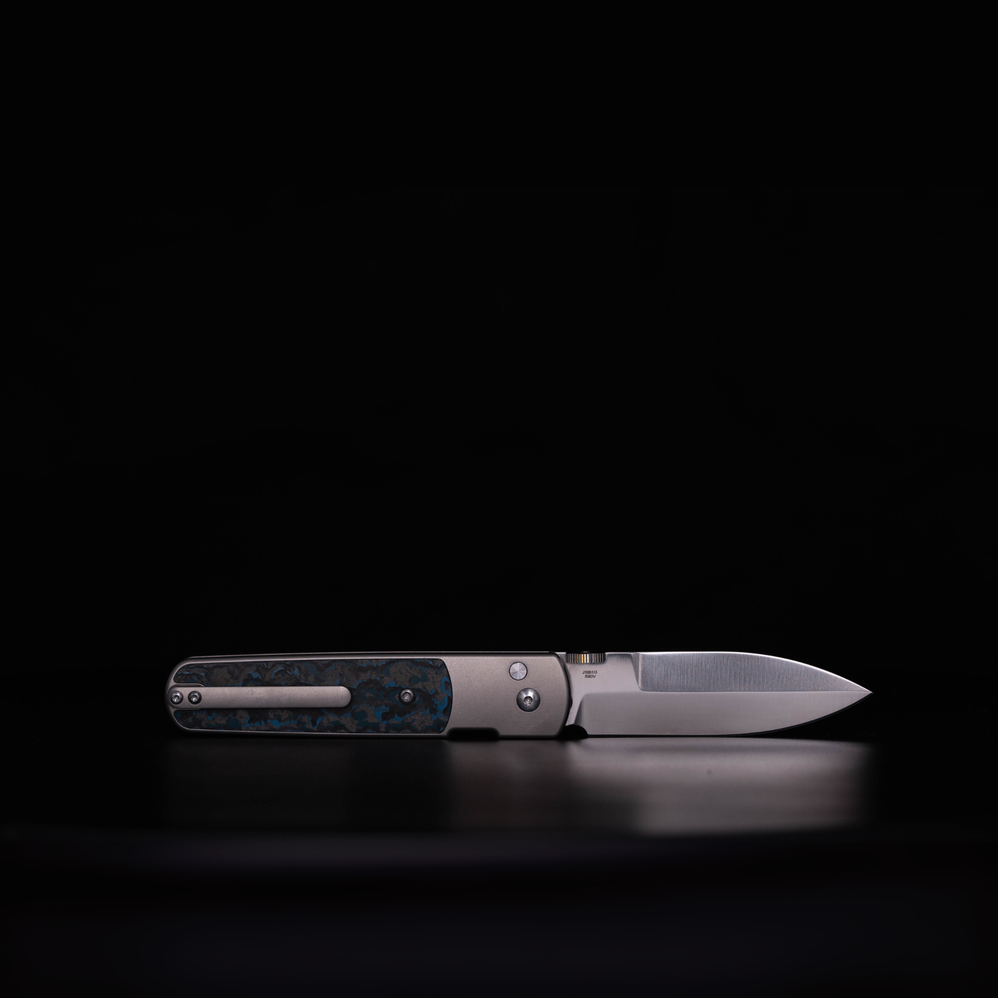 Now we get into the if-you-know-you-know territory. This version of the Locust gets the full EDC treatment, Premium titanium scales and Arctic Storm Fat Carbon scales. This version is a treat for the senses with smooth matte gray titanium and the shimmering blues and blacks of one of our favorite Fat Carbon colors. The titanium scales are ultra durable and hard-wearing while also being lighter than either of the previous models. This version was made to turn heads, like pulling out a stylish pen or flashing a high end watch the Suit and Ti version of the Locust was designed to elevate what you carry.