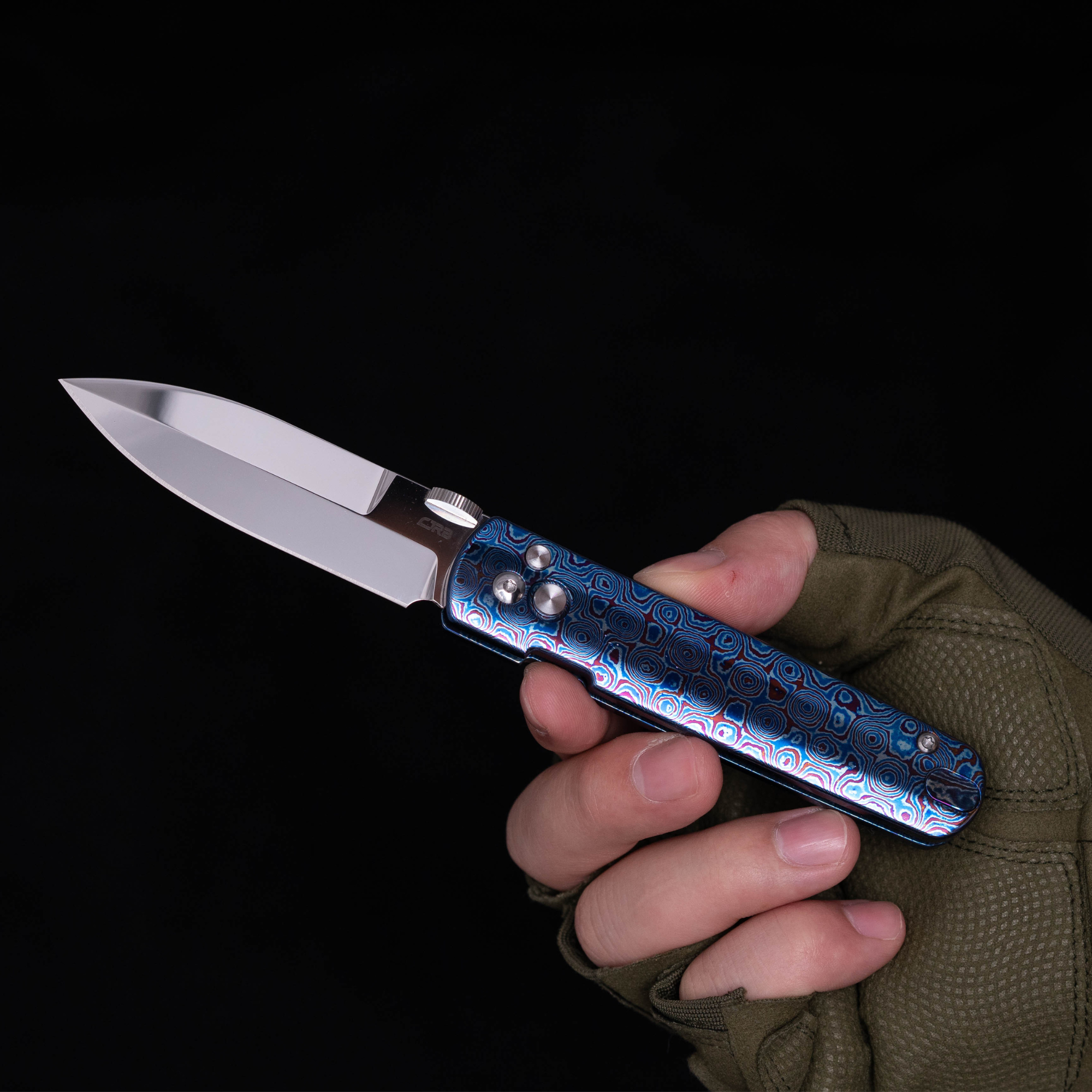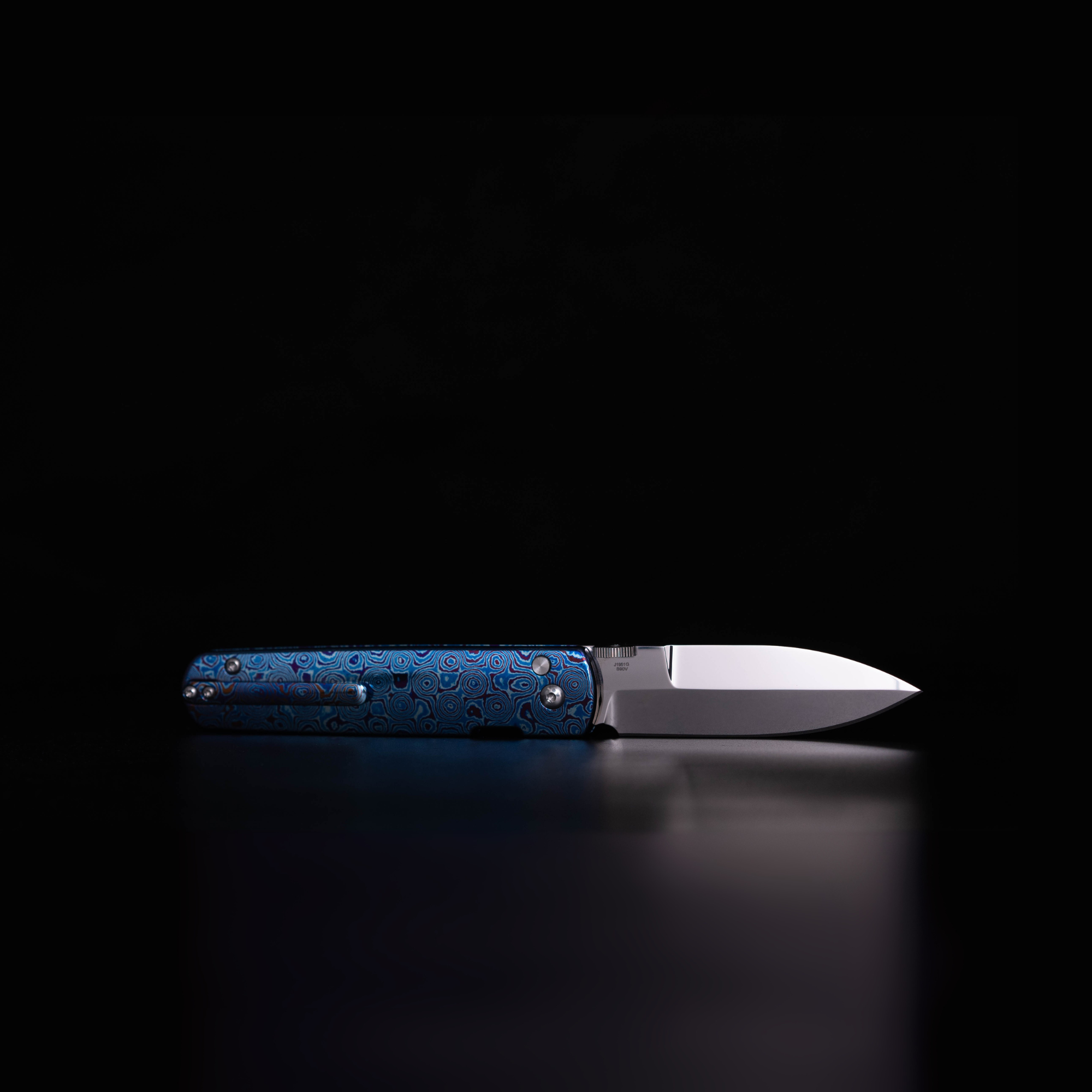This is it! The ultimate piece for collectors and enthusiasts. We select our titanium Damascus specifically for the bright blue tones and tight patterns that come out of it after the final etching process and the results are nothing short of stunning. The All Dressed Up Locust is pure pocket jewelry, with the beautiful jewel tones of the titanium Damascus and the fully hand polished blade this is an absolute show stopper and absolutely worthy of being our most premium version of the Locust that we are offering.