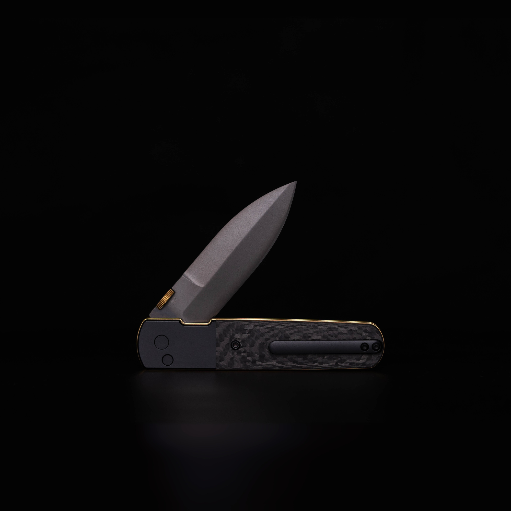 For those who are looking for a little lux. The Classy Carbon Locust hits all the right notes, it’s stylish, it’s modern, it has just a little bit of “pop”. The classic combination of black and gold along with a contoured carbon fiber scale makes this knife look like something out of a classic Bond movie. The Diamond-Like Carbon(DLC) Coating finish blade rounds out the esthetic making this knife the perfect accompaniment to a nice suit.