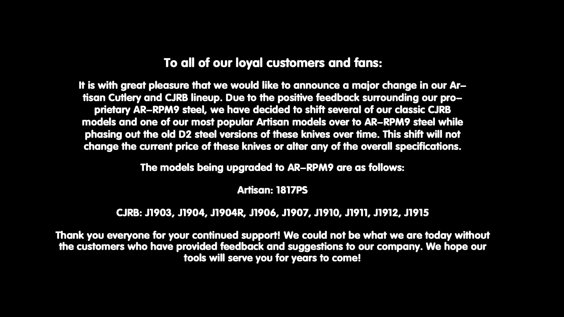 | Blade Material | D2/AR-RPM9 |